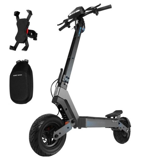 Scooter eléctrico de gama alta con pantalla táctil, encendido con llave y velocidad máxima de 70 km/h.